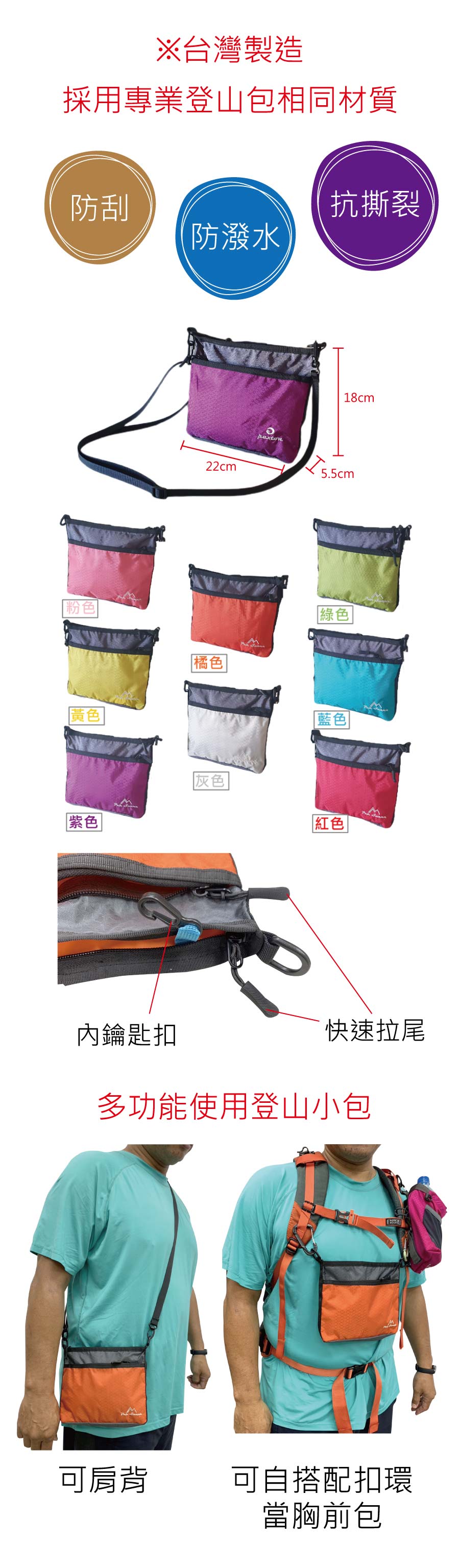規格:本體約18x22x5.5cm,420D尼龍材質,混色出貨 包裝:OPP袋裝 加工方式:外袋貼貼紙 基本量: 歡迎來電洽詢 【商品說明】 歡迎來電洽詢 【推薦商品】 bt00 彩色布條(280x150cm) bt00-1 彩色布條(240x45cm) bt00-2 彩色布條(180x60cm) bt00-3 彩色布條(240x75cm)