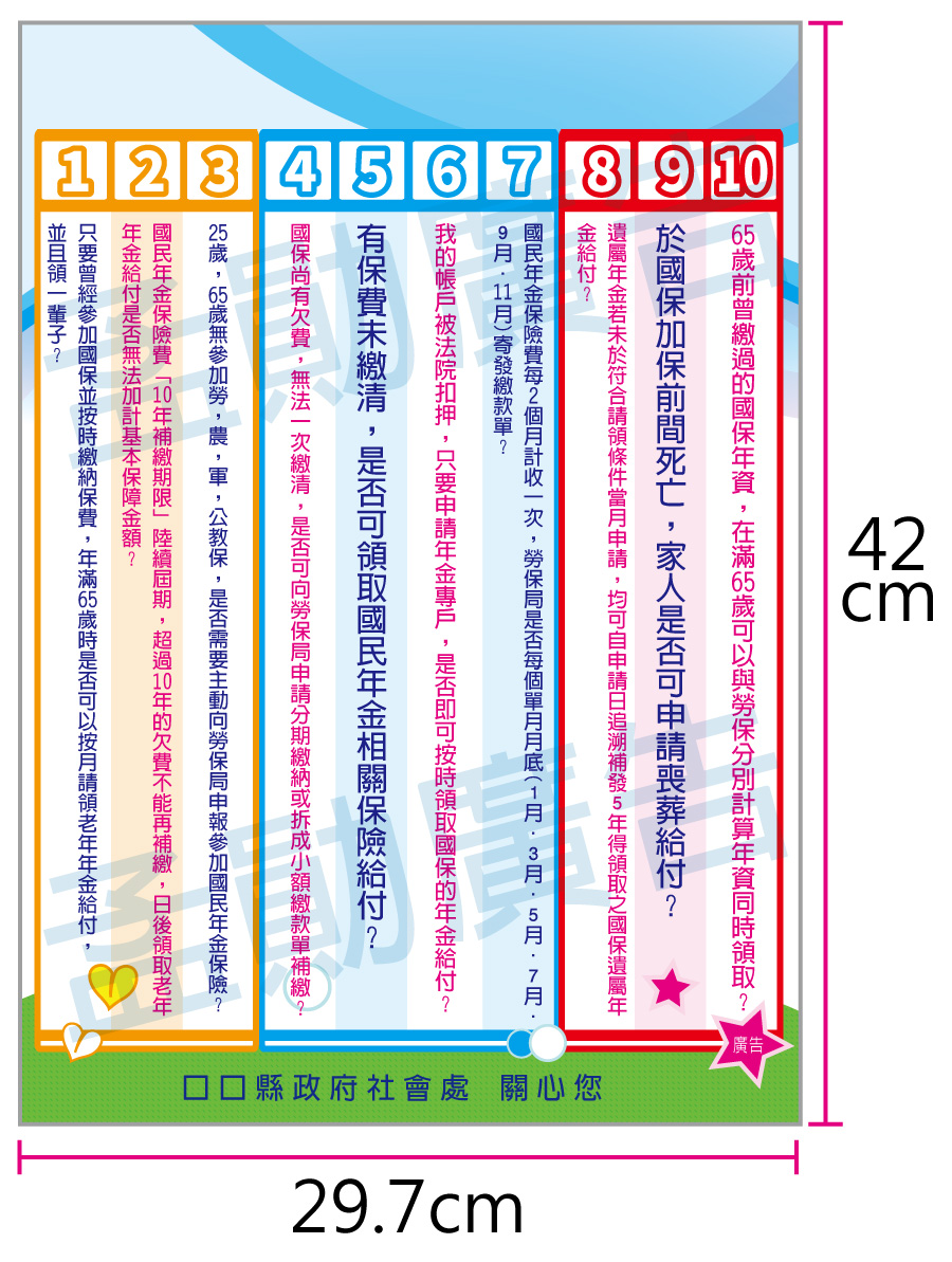 規格:29.7x42cm,單面彩色輸出裱板,背貼紙腳架 包裝: 加工方式: 基本量: 歡迎來電洽詢 【商品說明】 歡迎來電洽詢 【推薦商品】 bt00 彩色布條(280x150cm) bt00-1 彩色布條(240x45cm) bt00-2 彩色布條(180x60cm) bt00-3 彩色布條(240x75cm)